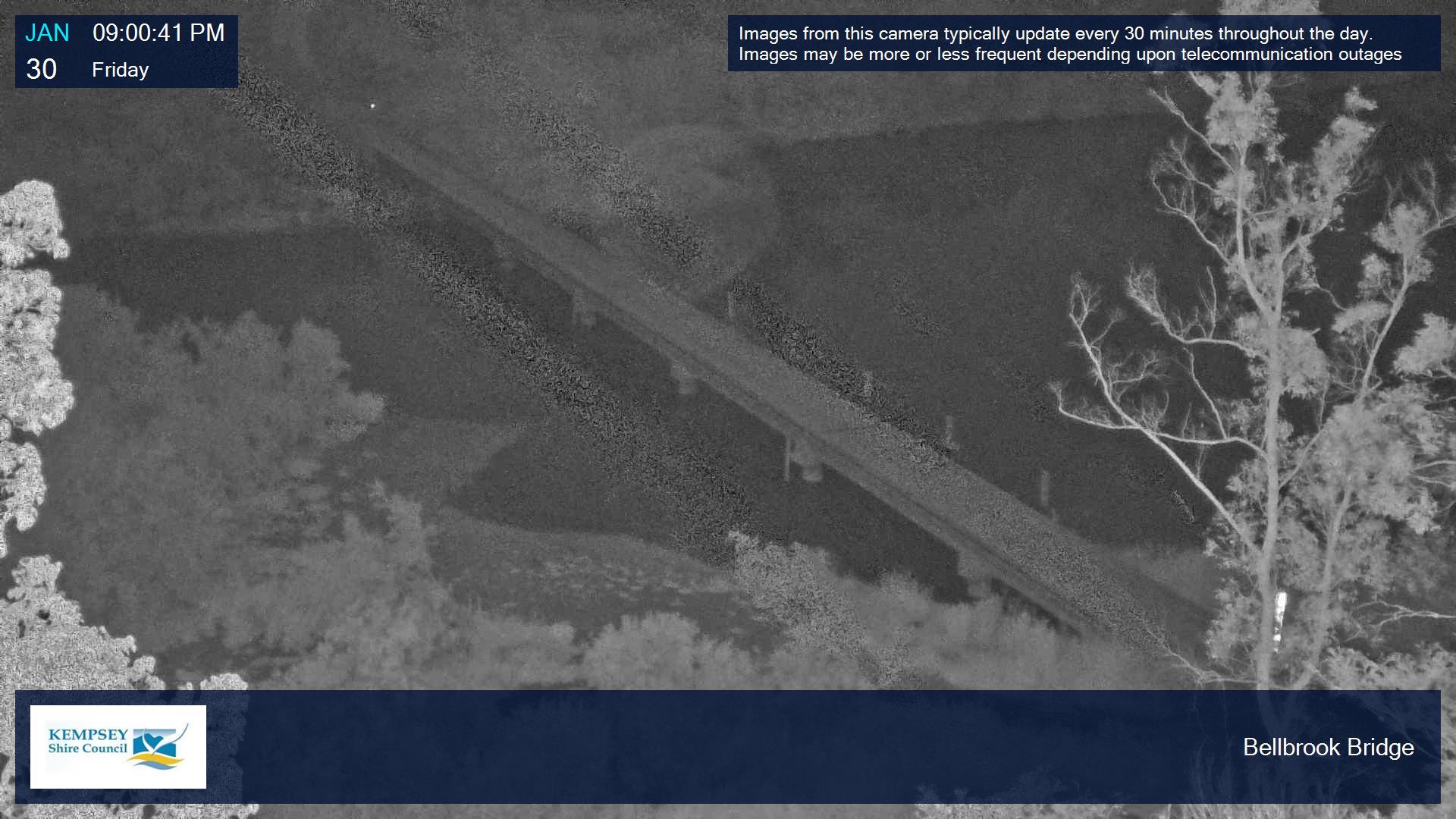 Please note the time stamp on the Bellbrook Bridge camera is stamped with Australian Eastern Standard Time, NOT Australian Eastern Daylight Time.