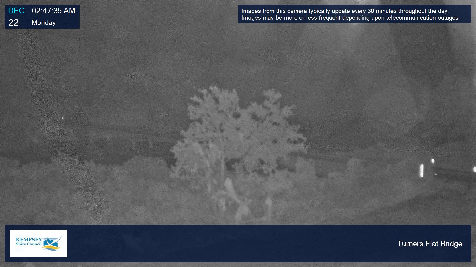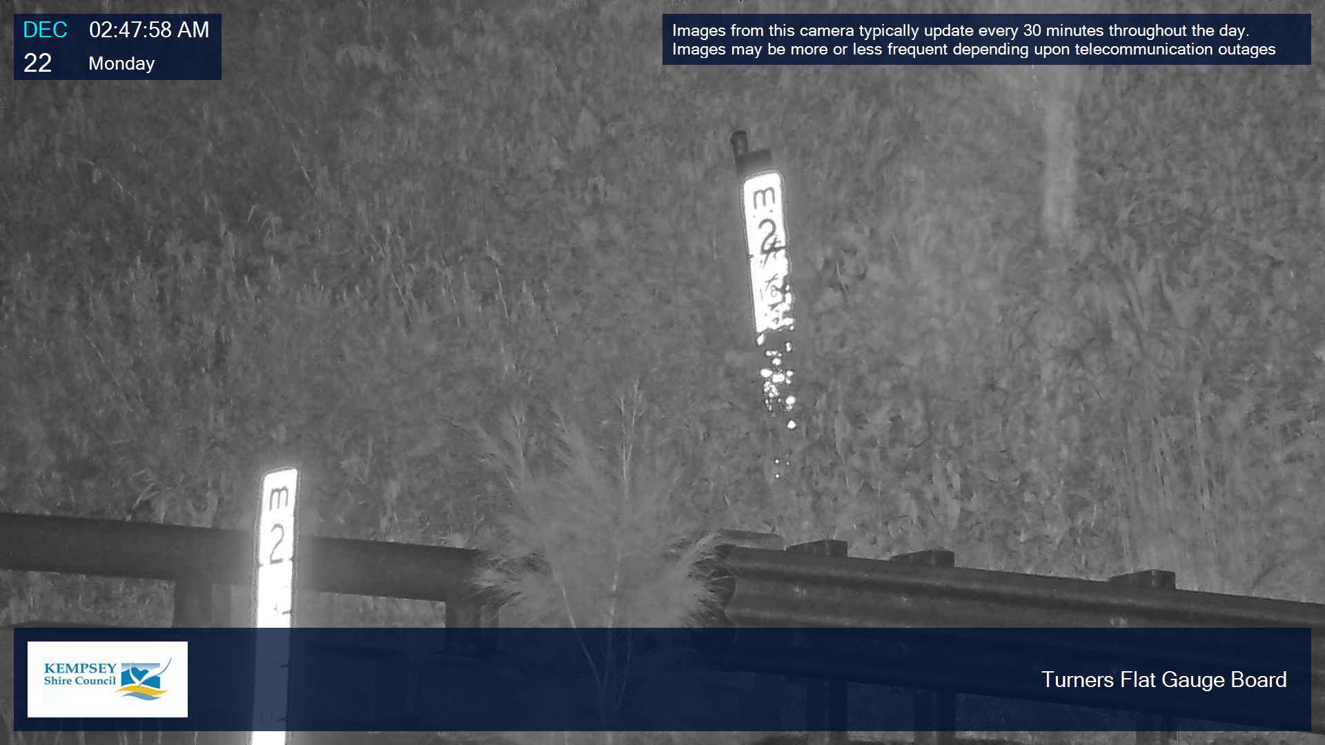 Please note the time stamp on the Turners Flat Bridge camera is stamped with Australian Eastern Standard Time, NOT Australian Eastern Daylight Time.